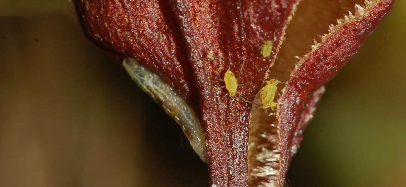 Unos de los bichos que puedes encontrar viviendo en tus plantas son los áfidos, también conocidos como pulgones, estos son pequeños insectos chupadores que pertenecen a la familia Aphididae. Son conocidos por su capacidad de reproducirse rápidamente y dañar las plantas. Los áfidos se alimentan de la savia de las orquídeas, lo que puede debilitarlas y causar deformidades en las hojas, tallos y flores. Generalmente tienen de 1 a 4 mm de longitud, con cuerpos blandos y colo